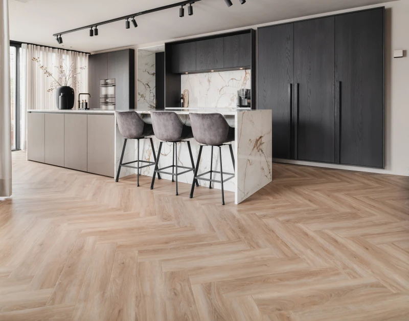 Therdex Rustique2 visgraat 7573 combineert een extra matte afwerking met een sterk voelbare houtstructuur, waardoor de nerf zelfs van dichtbij prachtig zichtbaar blijft. Het resultaat: een realistische, rustige uitstraling die past in zowel moderne als klassieke interieurs.